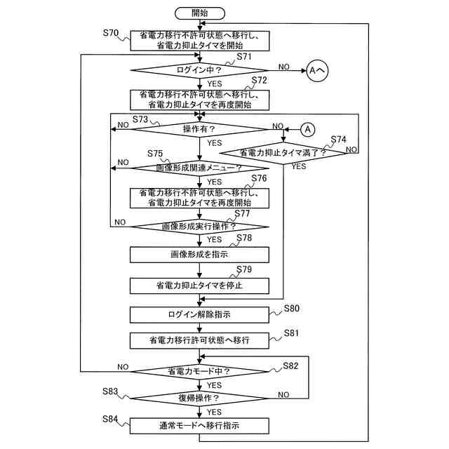このため、操作毎に省電力モードへの移行抑止時間を設け、最終操作から一定時間は省電力モードへの移行を抑止する必要が生じる。