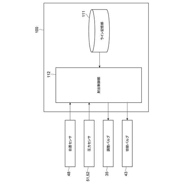 図1は、鋳造成形装置1の構成を例示する模式図である。鋳造成形装置1は、溶けた状態の金属(以下、「金属溶湯」という。)を金型内に充填して成形することで、鋳造品を製造する装置である。金属溶湯は、例えば、アルミニウム合金である。鋳造成形装置1は、ダイカストマシン、又はダイカスト装置とも称される。鋳造成形装置1は、例えば、金型10と、射出装置20と、油圧駆動部40と、位置センサ48と、圧力センサ51,52と、制御装置100と、を備える。以下、鋳造成形装置1が備える各要素について説明する。