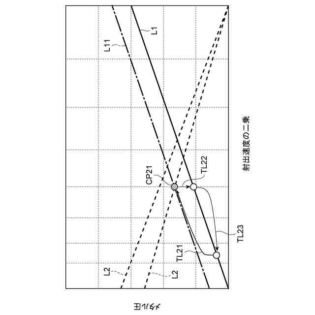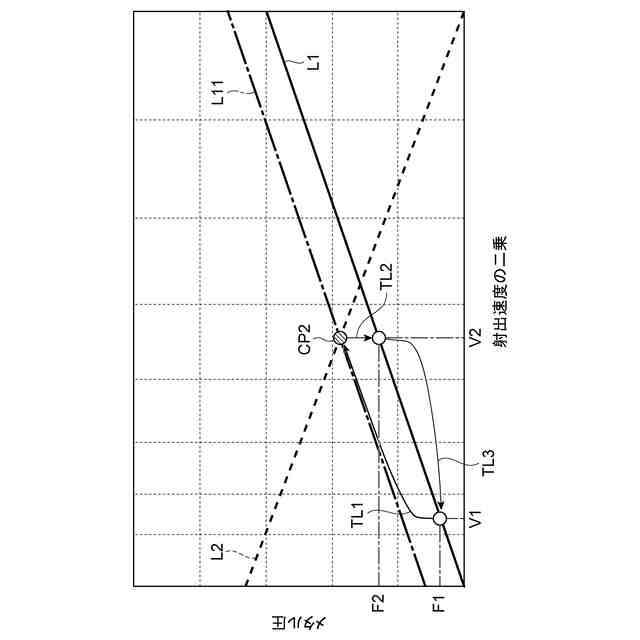 前記射出速度と、前記射出手段が発生可能な射出力と、の相関を示すマシンラインと、