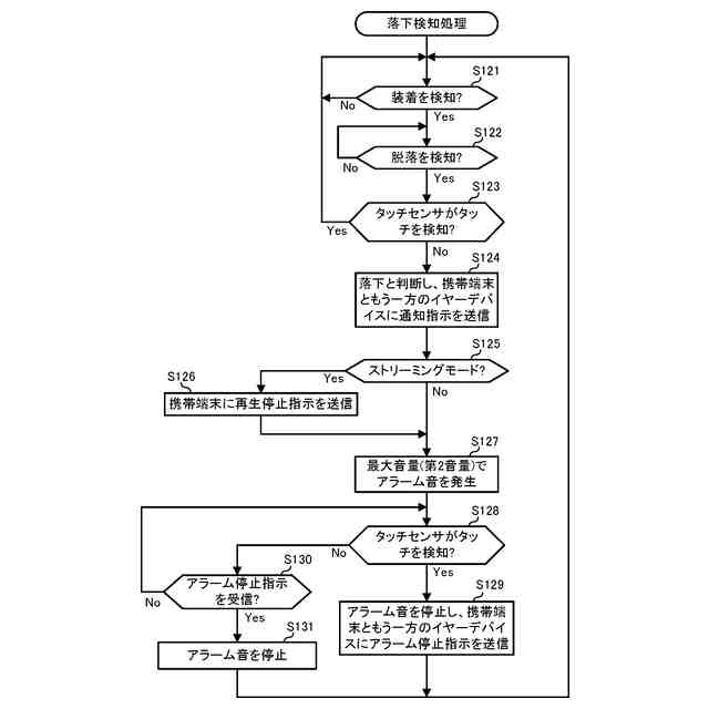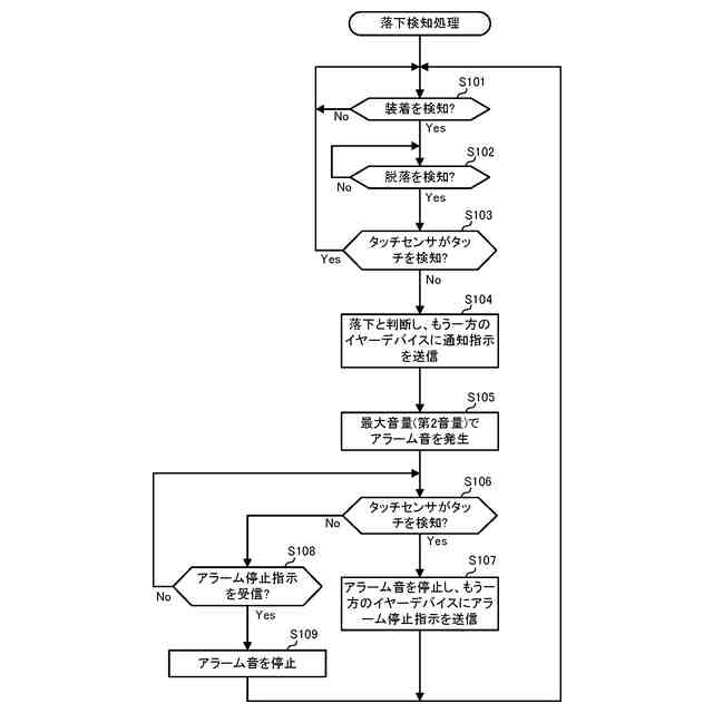 タッチ検知部でユーザがタッチしたことを検知していないのに、装着検知部で耳に装着されていないことを検知したら、落下したと判定する、