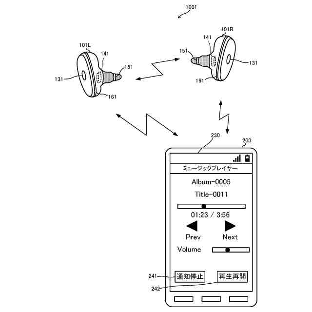 イヤーデバイスを1つのみ備えるイヤーデバイス通知システムの一例を示す図である。