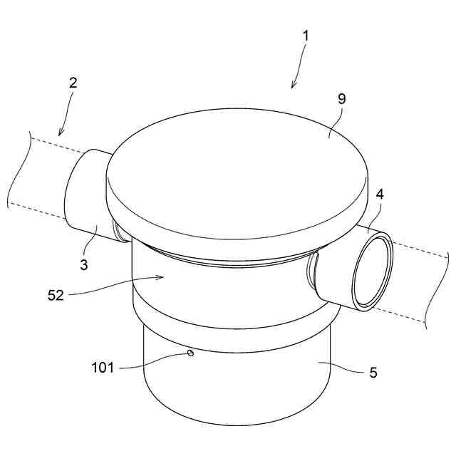 【解決手段】排水Aが流入する流入部3と排水Aを排出する排出部4とを有する筒状の本体5と、流入部3と排出部4とに連通する状態で且つ本体5との間に空間100を形成する状態で本体5の内側に配設されて、流入部3から流入する排水Aを貯留する貯留体6とが備えられ、流入部3と排出部4とは、本体5の側壁部に配設され、貯留体6は、本体5に対して取り付け及び取り外し自在に備えられている。