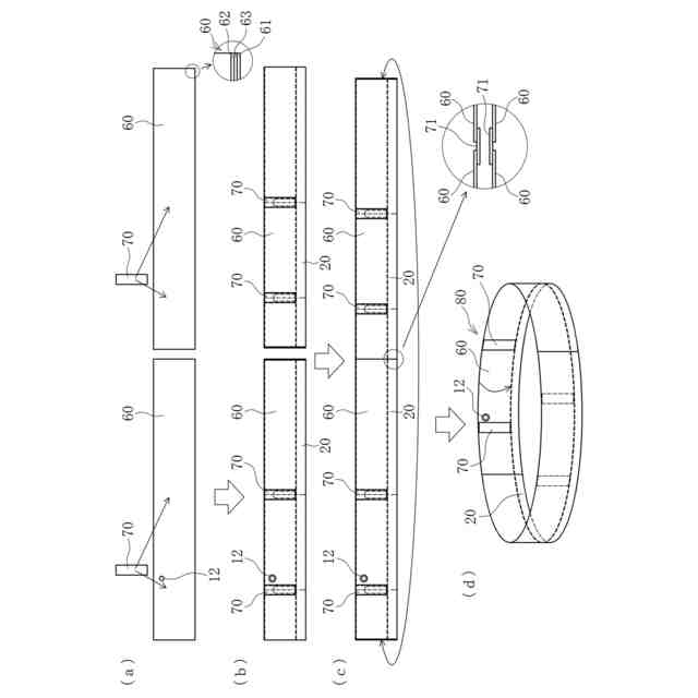 前記複合シート材の長手方向の端部同士を突き合わせて前記補助熱溶着シートを当てて熱溶着することにより環状に連結し、続いて、環状の前記複合シート材を幅方向に折曲げて、前記複合シート材同士を重ねて拝み接合することにより環状且つ円筒状に連結してもよい。
