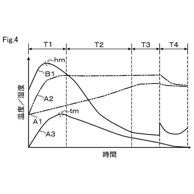前記制御部は、前記運転中において、前記温度及び前記湿度のいずれか一方がそれぞれの閾値に達した場合に現在の工程から次の工程に移行する、