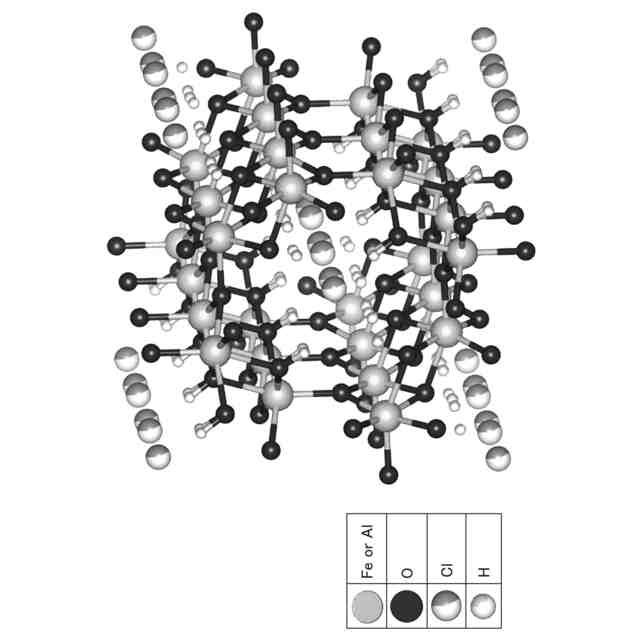 本発明の一実施形態に係る陰イオン吸着体における鉄・アルミニウム複水酸化物を示す図である。