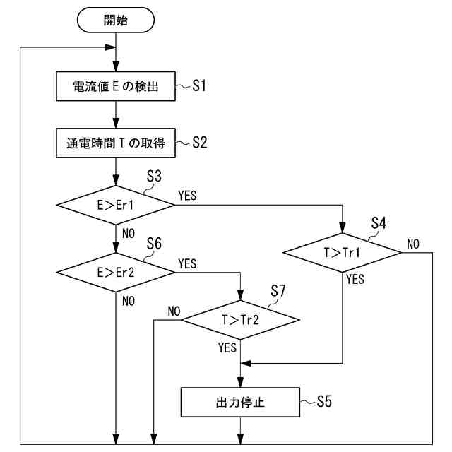 本発明では、インジェクタ駆動装置に係る第2の解決手段として、上記第1の解決手段において、前記電流値が第1電流しきい値を超え、かつ前記通電時間が第1時間しきい値を超えている場合に前記駆動電流の前記インジェクタへの供給を停止する、という手段を採用する。