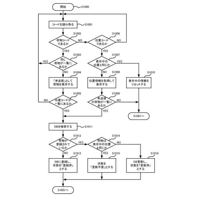 しかしながら、特許文献1では、荷物と、その荷物が置かれている物流拠点とを対応付けるために、ユーザは、端末装置に表示された数多くの物流拠点に対応するIDの一覧の中から、その荷物が置かれている物流拠点に対応するIDを探して選択し、端末装置に入力する必要があった。そして、物流拠点に搬入された荷物を管理場所に運び込むたびに、ユーザは都度、物流拠点内の各保管場所に対応するIDを端末装置に入力する必要があるため、ユーザの負担が大きかった。そのため、荷物の管理におけるユーザの手間を軽減する、さらなる技術が求められていた。