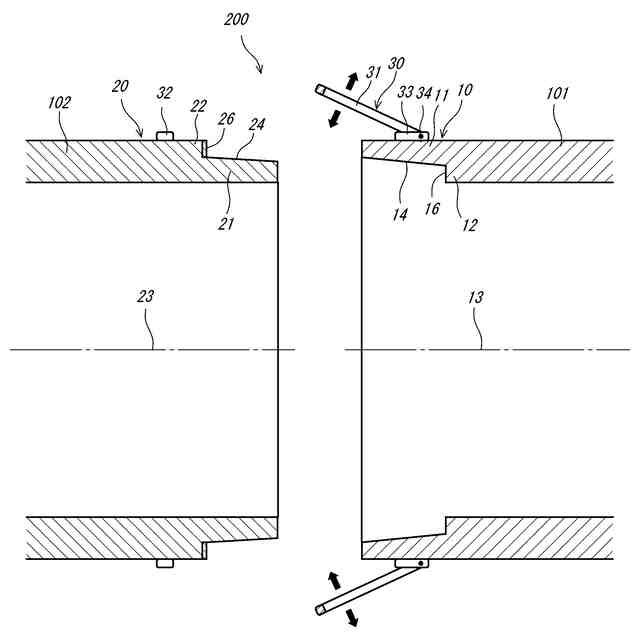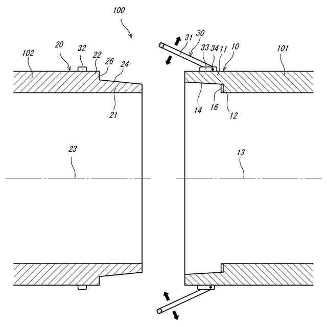 以下、実施形態について説明する。はじめに第1実施形態に係るダクト継手100について説明する。図1は、第1実施形態に係るダクト継手100の組合せ前の断面図である。図2は、第1実施形態に係るダクト継手100の組合せ時の断面図である。
