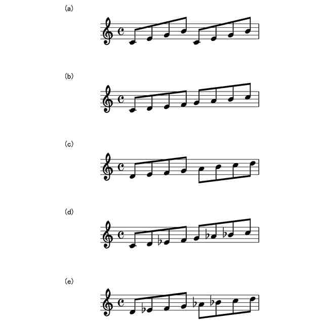 本実施形態で生成されるアルペジオデータに基づいて出力されるアルペジオを楽譜で示した図である。