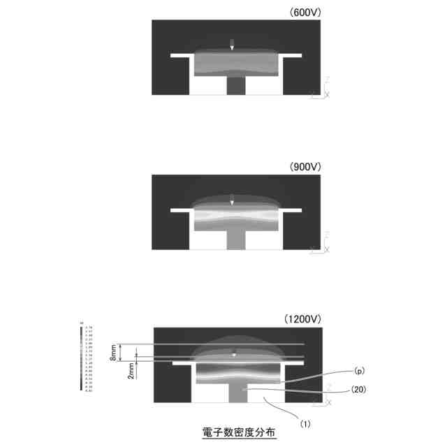 気体の分子(原子)が主に陽イオンと電子(両者を併せて「荷電粒子」という。)に電離した状態となるプラズマは、様々な分野で、種々の処理や加工に利用される。例えば、グロー放電により得られる低温プラズマは、制御性に優れ、化学気相成長(CVD)による薄膜形成等に利用されている。このようなプラズマCVD装置に関する記載が、例えば、下記の特許文献1にある。