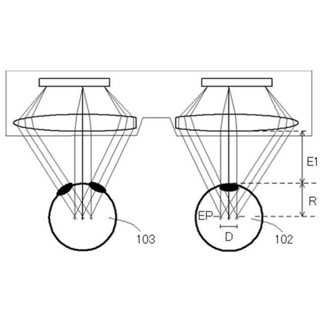 しかしながら、接眼光学系のレンズがユーザの鼻および額にあたらないようにレンズに鼻逃げ部や額逃げ部がある場合、光学有効径が狭くなるため光量が低下する。特許文献1および特許文献2に開示された技術では、接眼光学系のレンズによる光量落ちが考慮されていない。このため、画像の輝度の低下にレンズの光量落ちが重なるため、必要以上に画像が暗くなり自然な観察ができない可能性がある。
