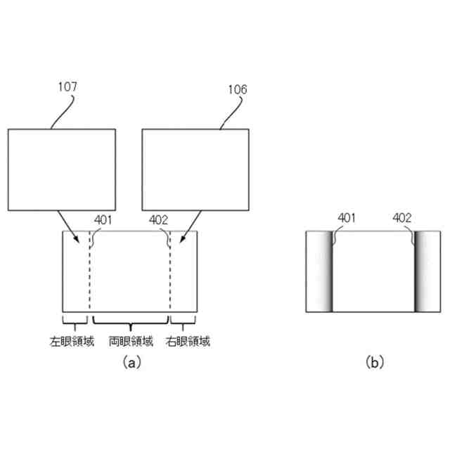 特許文献1には、両眼領域において境界部に向かって減光フィルタまたは画像処理で画像の輝度を低下させることで、単眼領域と両眼領域との境界部を目立たなくする技術が開示されている。特許文献2には、両眼領域において境界部に向かって減光フィルタまたは画像処理で画像の輝度を低下させる場合の開始位置を可変にする技術が開示されている。