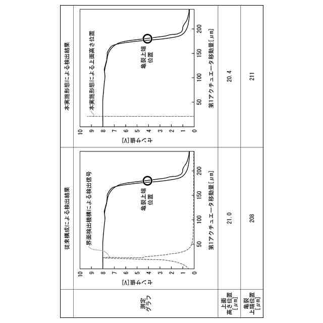 特許文献2には、亀裂の位置及び進展度合いを検出することができる亀裂検出装置が開示されている。具体的には、上記亀裂検出装置は、界面検出機構により被加工物界面の位置を取得した後、亀裂検出機構により被加工物内部に形成される亀裂の位置及び伸展度合い(亀裂深さ)を検出または算出する。