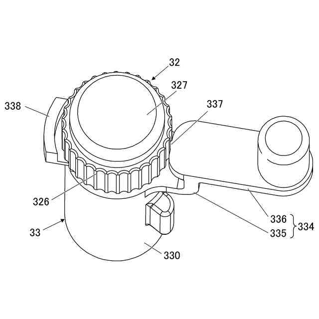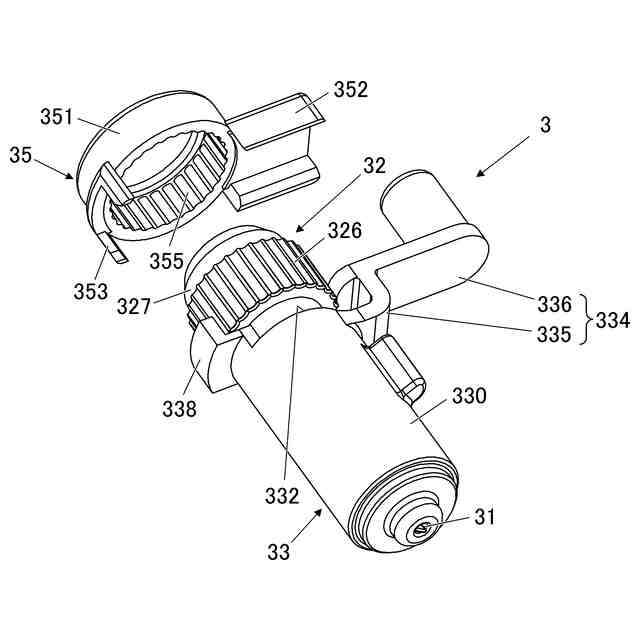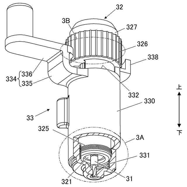 図4に示すカッターユニットの上方からロックキャップを取り付ける様子を示す斜視図である。