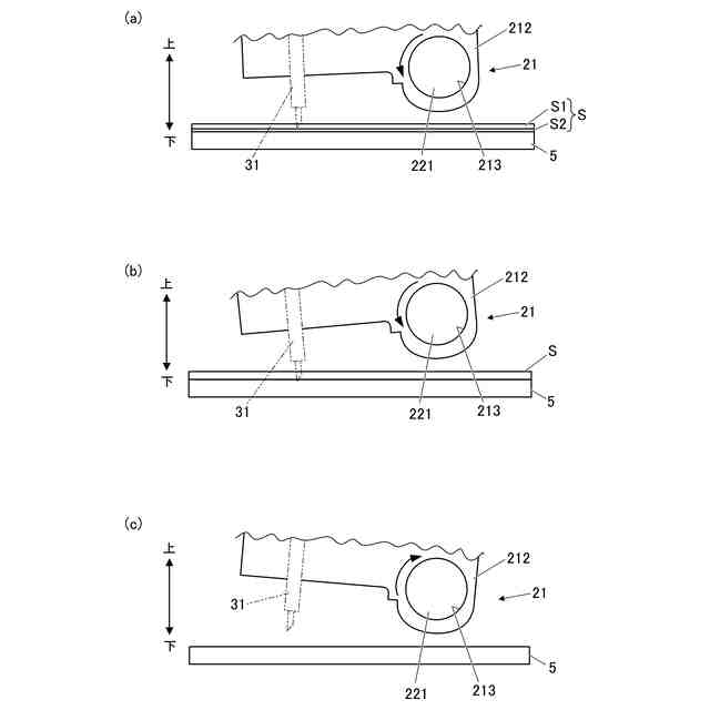 【解決手段】カッターユニット3が、カッター刃31を保持するカッタースリーブ32と、カッタースリーブ32を内部に収容するカッタースリーブホルダ33と、を備え、カッタースリーブ32とカッタースリーブホルダ33とが有するねじ部であるおねじ部325とめねじ部331との螺合具合によってカッタースリーブホルダ33に対するカッタースリーブ32及びカッター刃31の位置が調整され、ねじ部であるおねじ部325とめねじ部331の螺合具合を保持することによってカッター刃31の位置が調整された状態を保持する保持部としてのロックキャップ35をさらに備える。