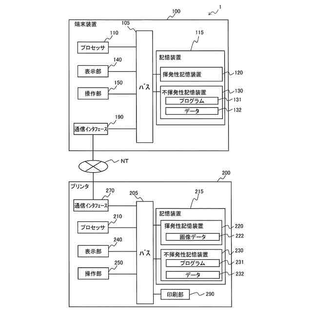端末装置及びプリンタのハードウェア構成の一例を表すブロック図である。