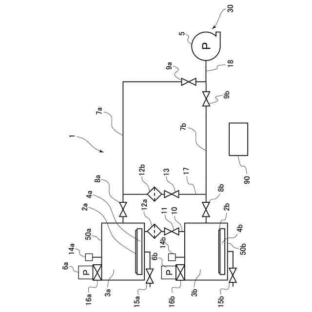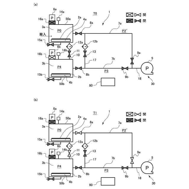 しかしながら、実際の生産ラインでは、短い生産タクトタイムに対応するために複数の処理室が設置される場合が多く、それに伴い、ポンプに必要な排気能力が増大し、特許文献1に示されているような、配管径の最適化のみでは乾燥のスループットを十分に向上させることが難しい。