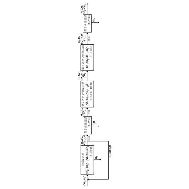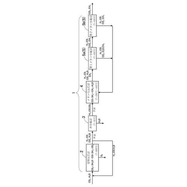近年、カーボンニュートラルの観点から、二酸化炭素を原料としてメタンを製造するプロセスの研究開発が行われている。例えば、電解反応によって水から水素を製造し、その後に水素と二酸化炭素とを原料とするメタン化反応によってメタンを製造するプロセスが提案されている。また、特許文献1には、電解反応部と逆水性ガスシフト反応部とを組み合わせて、電解反応によって水と二酸化炭素とから水素と一酸化炭素とを含むガスを製造し、水素と一酸化炭素とを原料とするメタン化反応によってメタンを製造するプロセスが開示されている。