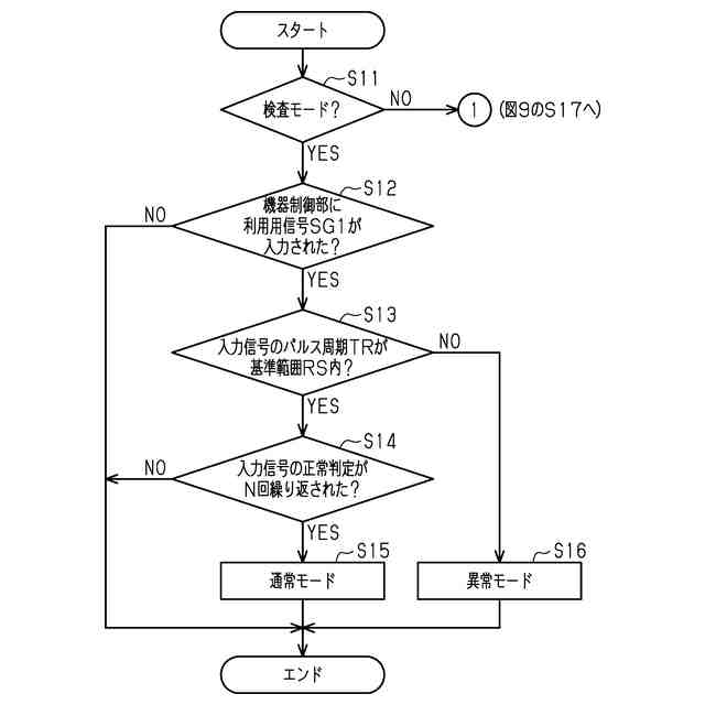 前記検査モードであるときに前記利用用信号が入力されたことは、前記検査モードであるときに前記機器制御部に入力される前記制御量信号のデューティ比が「0%」よりも大きく、且つ「100%未満」になったことである、