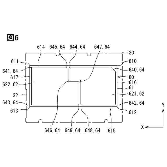 複数の前記角部は、切り欠かれた前記角部である第1角部(540,640)と、第2角部(542,642)と、を含み、