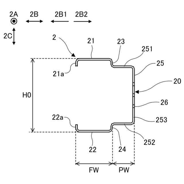 前記第1基面及び前記第2基面の前記他端からの前記第2方向に係る前記凸部の突出幅は、10mm以上かつ前記第1フランジ部及び前記第2フランジ部の幅以下である、