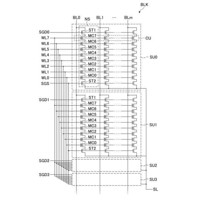 第1実施形態に係るメモリシステムの備えるメモリセルアレイの回路図。