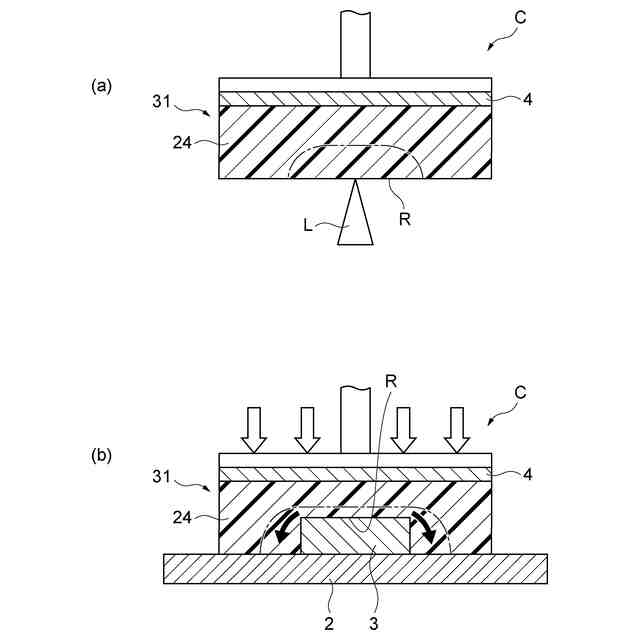 FOD構造を有する半導体パッケージの製造においては、半導体チップが接着フィルムを用いた埋込部によって十分に埋め込まれること(埋込性)が求められている。埋込性に関しては、ボイドの抑制の両立が重要となっている。ボイドとは、基板とメモリチップとの間で埋込部内に空隙が生じてしまう現象である。埋込部でボイドが生じると、半導体パッケージの信頼性に影響することが考えられる。