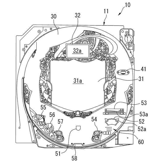 外枠ユニット2、内枠ユニット3及び一体扉ユニット4は、ヒンジ機構を介して、互いに固定されている。これによって、内枠ユニット3は、外枠ユニット2に対して開閉することが可能となっている。また、一体扉ユニット4は、内枠ユニット3及び外枠ユニット2のそれぞれに対して開閉することが可能となっている。