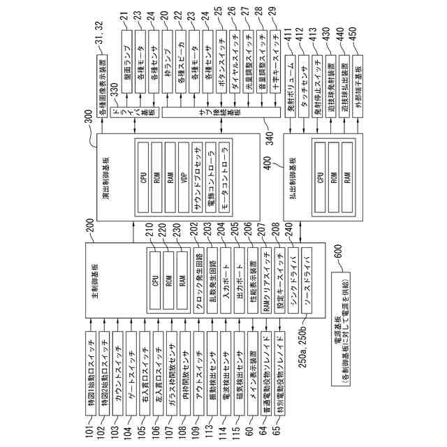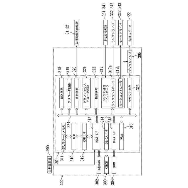 【解決手段】 パチンコ機1は、第1のトラックに割り当てられた第1の音声データの音量に基づいて、第2のトラックに割り当てられた第2の音声データの音量を調整することが可能な演出制御基板300を備えている。特に、一のトラックに割り当てられた音声データについて、複数のトラックに基づく音量の調整の対象となる場合、当該複数のトラックについて算出された調整量(ダッキング量)のうち、最大の調整量が、当該一のトラックに割り当てられた音声データの音量の調整量とされる。