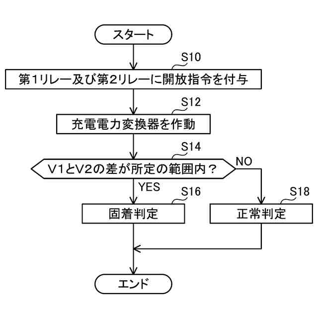上記した実施形態において、開放指令を与える処理は、第1リレーにも開放指令を与えてもよい。この場合、電圧を印加する処理は、電力変換器を作動させることにより、交流充電経路を介してバッテリから第2リレーに電圧を印加してもよい。このような構成によると、固着検出処理では、直流充電経路をバッテリから電気的に遮断しつつ、交流充電経路を介してバッテリから第2リレーに電圧が印加される。
