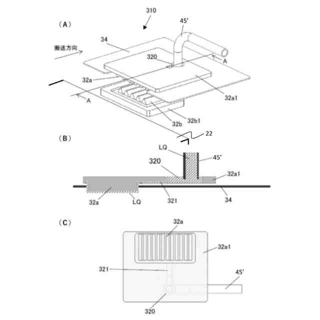 第二実施形態に係る液体付与手段を用紙の厚み方向から見た図。