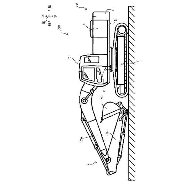 図1に建設機械の一例としての油圧ショベル50の全体構成を示す。以下、本願明細書においては、油圧ショベルを例にとって説明する。