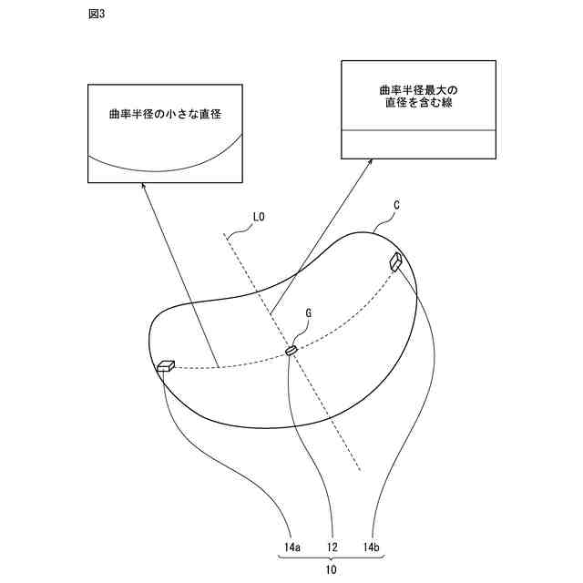 前記基準線を前記凹状曲面の垂線の方向において前記可撓性シートの凹状曲面に投影した線をシート表面基準線とし、