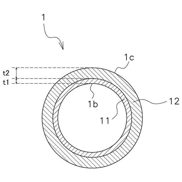 このように、第1層の外側の第2層に顔料を含めることで、更新前の管と更新後の管に色差を設けることができる。そのため、更新の前後の管を容易に判別することができる。また、半導体工場等において、常温水と高温水を流す管の間で色を異ならせることで、温度の異なる液体が流れる管の判別を容易に行うことができる。