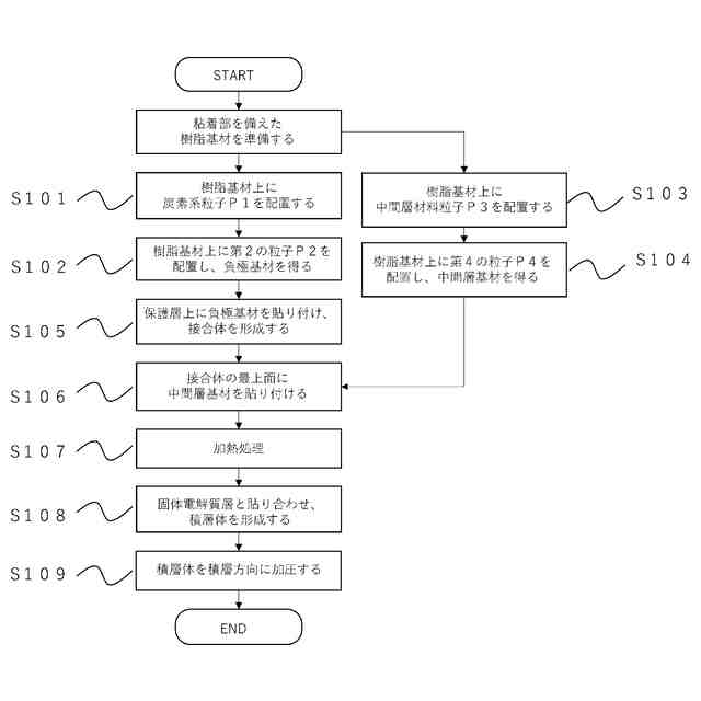 【解決手段】導電性を有する炭素の同素体を含む負極と、酸化物系固体電解質を含む電解質層と、前記負極と前記電解質層との間に配置されリチウムと合金化する無機材料およびリチウム合金の少なくともいずれかを含む中間層と、前記負極の前記中間層と接する面と反対側の面において前記負極と接合される保護層と、を備え、前記保護層が有する第1の線膨張係数と前記負極が有する第2の線膨張係数との差の絶対値は10.0×10