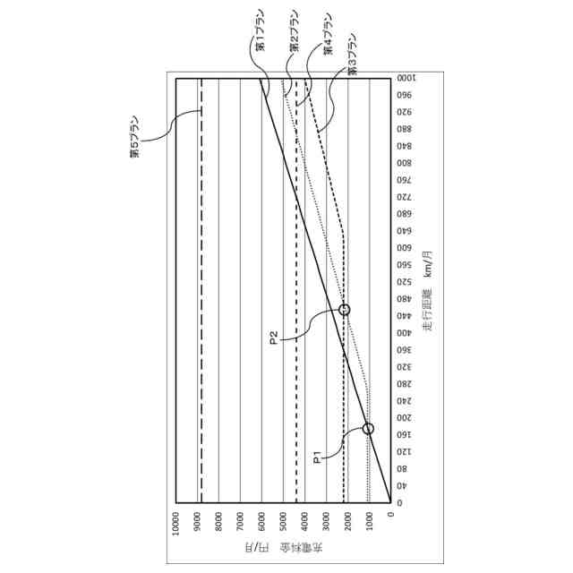 前記電費と1月あたりの月間走行距離とから前記料金プランのうちユーザに合ったおすすめ料金プランを決定する決定部と、