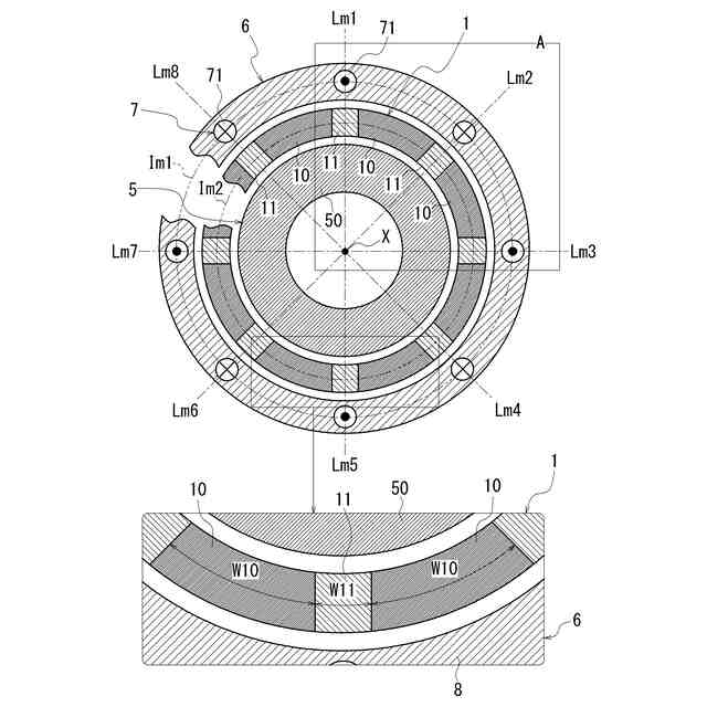 前記回転軸の径方向から見て、前記磁化領域と前記非磁化領域は、前記回転軸方向に交互に設けられており、