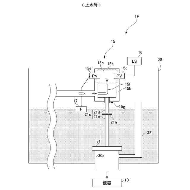 第7実施形態に係る洗浄水タンク装置のフラッシュバルブ止水時を示す図である。