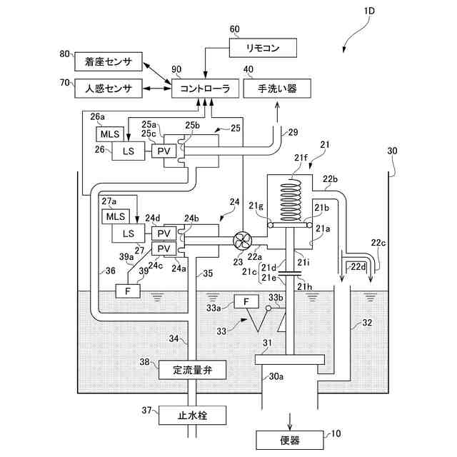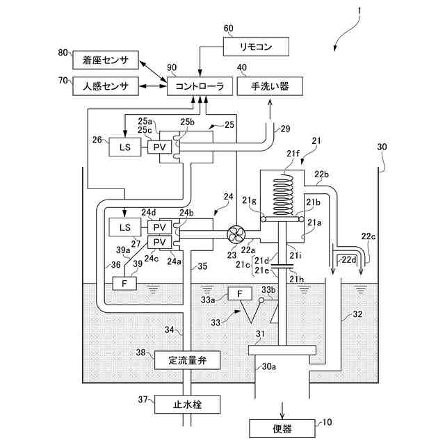 また、手洗い吐水部から吐水された洗浄水は洗浄水タンクに貯留されるため、洗浄水タンク内の洗浄水の水位が所定水位に達して水道からの洗浄水の供給が停止した後においても、手洗い器を経由した洗浄水が洗浄水タンクに供給される。そのため、洗浄水タンク内に貯留される洗浄水の水位が所定水位を超えてしまうため、手洗い吐水部への洗浄水の供給が遅れ、手洗い吐水部からの洗浄水の吐水タイミングにさらに遅延が生じていた。加えて、手洗い器の有無によって洗浄水タンク内の洗浄水の水量が変動してばらつくことになるため、余裕を持って公称水量を設定する必要があった。