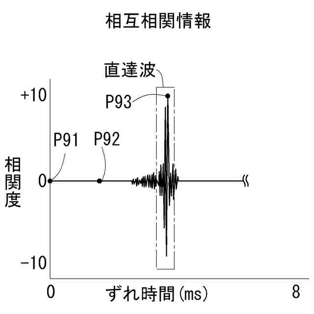 前記送波信号又は前記受波信号のいずれか一方を時間的に移動させてずらした場合における、ずれ時間に対する前記送波信号及び前記受波信号の相互間の相関度が求められる相互相関情報を特定する第1処理と、
