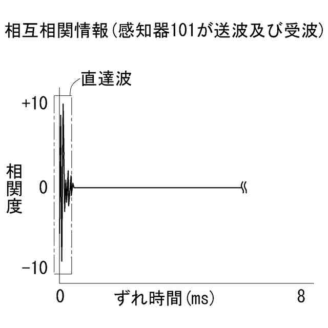 前記第1処理において、前記送波手段から繰り返し送波される音波各々に関して前記相互相関情報を特定し、