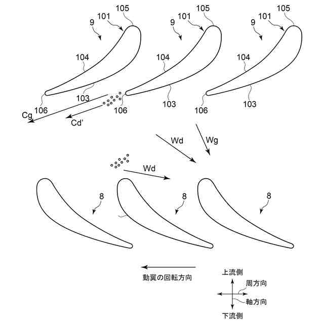 蒸気タービン内を通過する蒸気は、上流側から下流側に向かうにつれてエネルギーを失い、温度と圧力が低下する。そのため、蒸気タービンの下流段では、蒸気の一部が凝縮して微細な水滴として気流中に存在しており、その水滴の一部はタービン静翼の表面に付着し、翼面上で成長して液膜となる。この液膜がさらに成長して厚みが増すと、その一部が蒸気流によってちぎれて粗大液滴の状態で飛散する。飛散した液滴は下流側のタービン動翼に衝突すると、タービン動翼の回転が阻害されて制動損失が生じたり、エロージョンを発生させる要因となる。