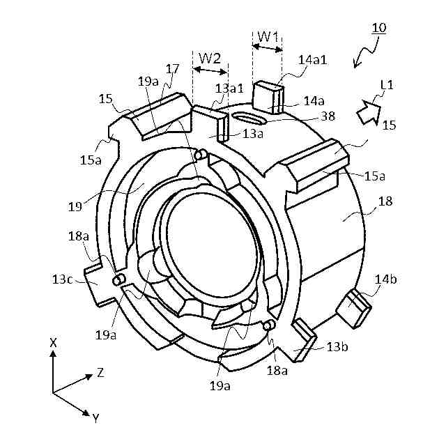 前記第1保持部材は、外周側に周方向に突出する複数の突条部と、前記固定枠と接着する接着固定部が一体に設けられており、