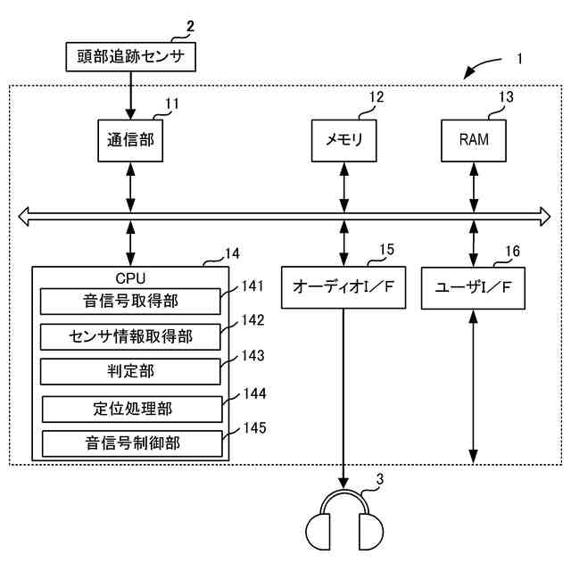 図1は、第1の実施形態に係る、音処理システム100の基本的な構成を示すブロック図である。音処理システム100は、音処理装置1、頭部追跡センサ2、及びヘッドフォン3を備えている。