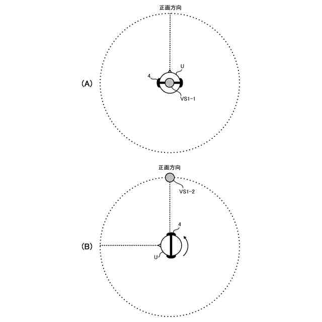 図4(A)及び図4(B)は、第1の実施形態に係る、ユーザの頭部と音信号の音像定位位置の関係を示す図である。
