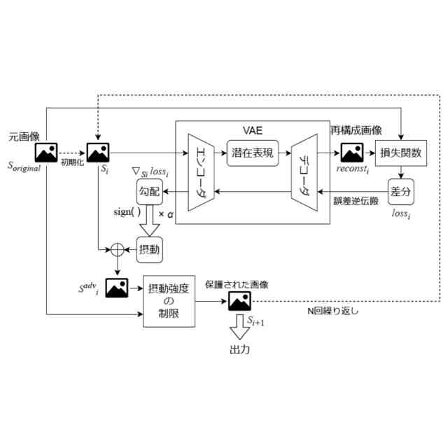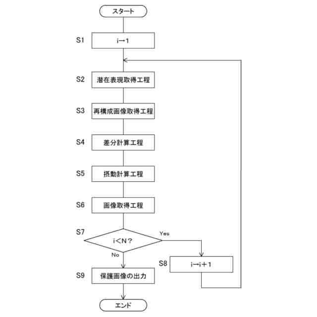 前記画像取得工程で取得する前記更新画像を前記潜在表現取得工程の前記入力画像として前記潜在表現取得工程、前記再構成画像取得工程、前記差分計算工程、前記摂動計算工程、及び前記画像取得工程を繰り返し行って取得する前記更新画像を、前記対象画像の保護画像として生成する。