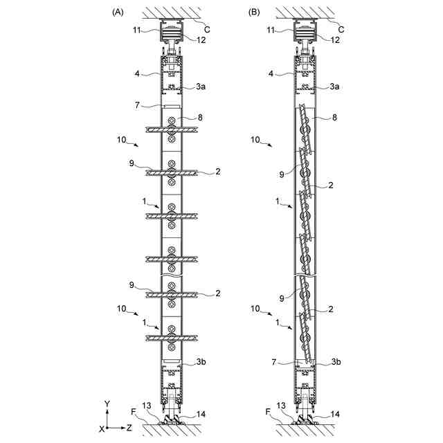 前記回転機構は、複数の前記可動部材が上下に連結されることにより構成される