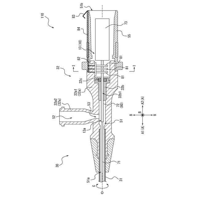 前記ハブ部材に覆われており、前記コイルシャフト部に取り付けられている導電性の接続パイプ部と、を備え、