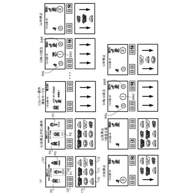 各リール(左リール110、中リール111、右リール112)に施される図柄の配列を平面的に展開して示した図である。