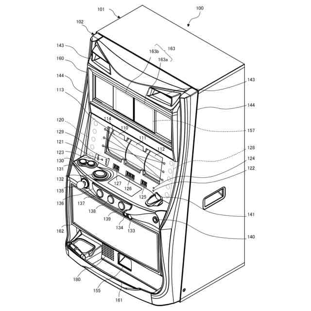 スロットマシン100を正面側(遊技者側)から見た外観斜視図である。